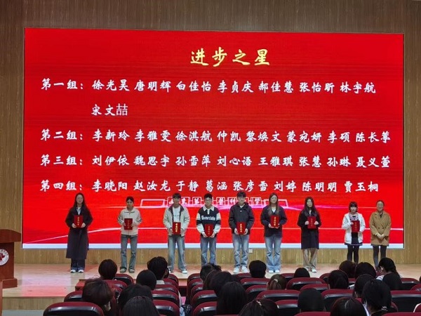 本次活动以“笃学善思,互鉴共进”为核心主题,设置颁奖表彰与经验交流两大环节。本次共评选出学习之星86名、进步之星83名,覆盖全体在校学生,表彰覆盖面广、示范引领作用突出。朱宏为学习之星获奖同学颁奖,张世芳为进步之星获奖同学颁奖,充分肯定获奖同学在学业上的不懈努力与显著进步。并鼓励全体同学,广大同学以这些优秀学生为榜样,志存高远、脚踏实地,不断提升自己的专业素养和实践能力。