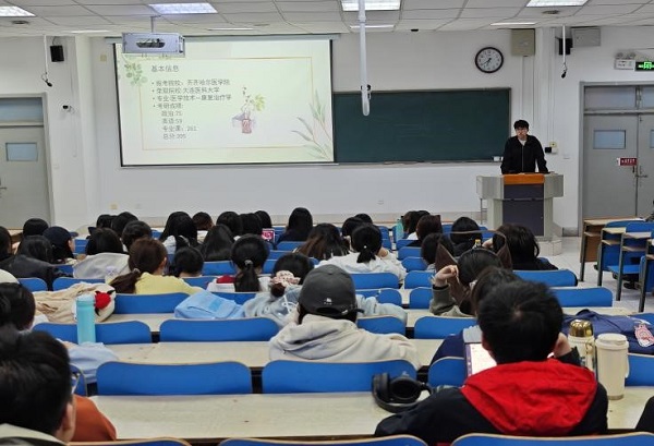 本次讲座特邀2025届运动康复专业毕业生、现重庆医科大学研究生刘英源,以及2026届康复作业治疗专业毕业生、现大连医科大学研究生桂梓朔担任主讲人。讲座伊始,张世芳老师结合康复人才培养目标,强调考研规划对学子职业发展的重要性,鼓励同学们提前筹备、积累经验。